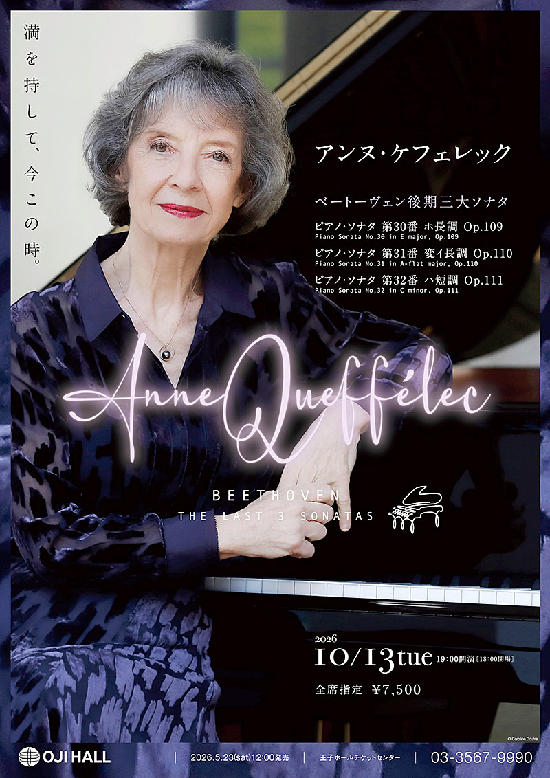 この時を待っていました。風格と気品を湛えるフランスの名ピアニスト、アンヌ・ケフェレックが4年ぶりに登場。満を持してのベートーヴェン後期三大ソナタ。驚異の集中力でお届けします。