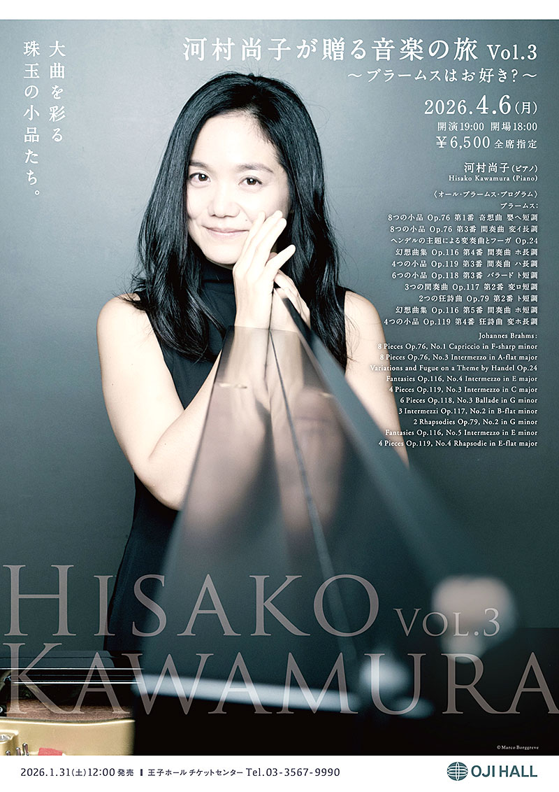 河村尚子(ピアノ) ハノーファー国立音楽芸術大学在学中の2006年ミュンヘン国際コンクール第2位受賞。翌年、クララ・ハスキル国際コンクールにて優勝を飾り、大器を感じさせる新鋭として世界の注目を浴びる。ドイツを拠点に、ヨーロッパ、ロシア、日本などで積極的にリサイタルを行う傍ら、ウィーン交響楽団、バイエルン放送交響楽団などにソリストとして迎えられ、室内楽でもカーネギー・ホールなどで演奏。日本では、04年小林研一郎指揮東京フィルハーモニー交響楽団の定期演奏会でデビュー。以来、P.ヤルヴィ指揮NHK交響楽団を含む日本国内の主要オーケストラと相次いで共演を重ねる一方、フェドセーエフ指揮モスクワ放送交響楽団、ルイージ指揮ウィーン交響楽団、プレトニョフ指揮ロシア・ナショナル管弦楽団、ヤノフスキ指揮ベルリン放送交響楽団、ビエロフラーヴェク指揮チェコ・フィルハーモニー管弦楽団、山田和樹指揮バーミンガム市交響楽団などの日本ツアーに参加。主なCDに「ショパン:ピアノ・ソナタ第3番&シューマン:フモレスケ」「ラフマニノフ:ピアノ協奏曲第2番&チェロ・ソナタ」「ショパン:24の前奏曲&幻想ポロネーズ」「月光」「悲愴」を含む待望のベートーヴェンのCDを19年4月にリリースし、続けて10月にはベートーヴェンの「熱情」等を収めた最新譜が発売された(RCA Red Seal)。文化庁芸術選奨文部科学大臣新人賞、新日鉄音楽賞、出光音楽賞、日本ショパン協会賞、井植文化賞、ホテル・オークラ賞、20年には第32回ミュージック・ペンクラブ音楽賞独奏・独唱部門賞、第12回CDショップ大賞2020・クラシック賞、第51回サントリー音楽賞を受賞。24年はデビュー20周年を迎え、9月に記念のツアーを行い、新しいアルバム「20-Twenty」を発売。これまで、ウラディーミル・クライネフ、澤野京子、マウゴルジャータ・バートル・シュライバーに師事。現在、ドイツ・エッセンのフォルクヴァング芸術大学教授。 |