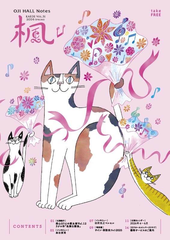 王子ホールでは、アーティストの紹介や演奏会情報を掲載した冊子『OJI HALL Notes 楓』を発行しております。ホール、メンバーズクラブ提携店で配布している他、電子ブック版でもご覧になれます。